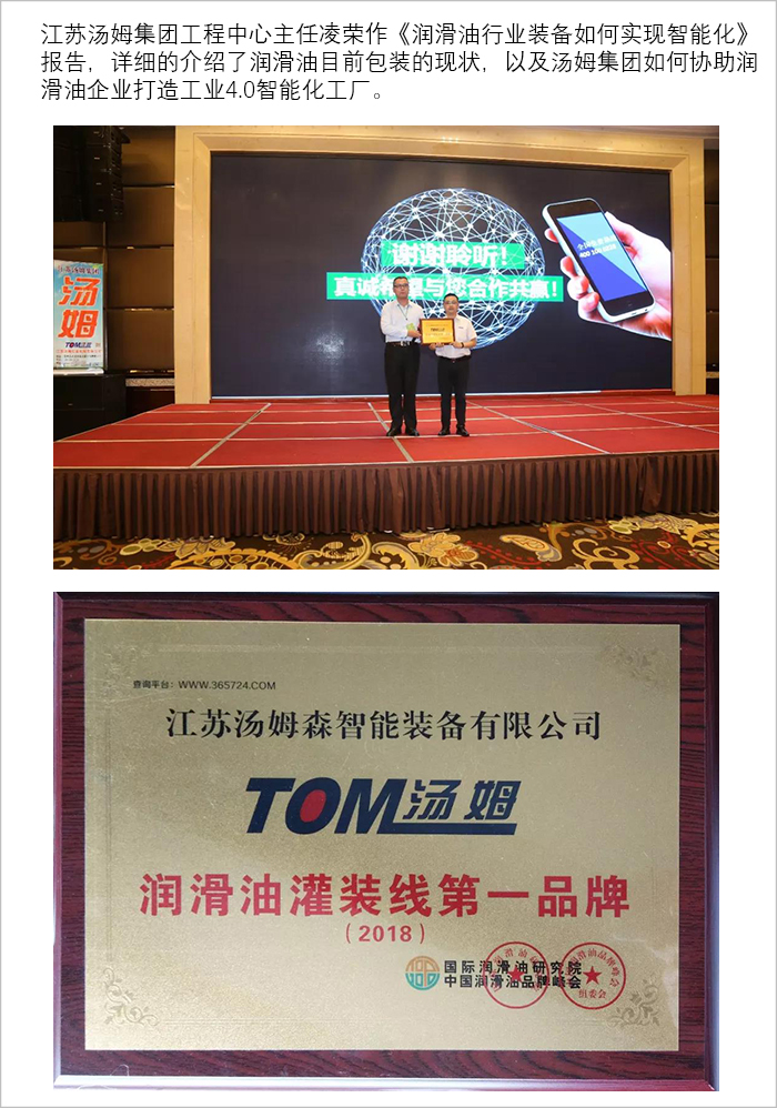 圖為湯姆集團董事長為獲獎企業(yè)頒獎