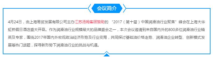 江蘇湯姆集團贊助“2017(第十屆)中國潤滑油行業聚焦”大會