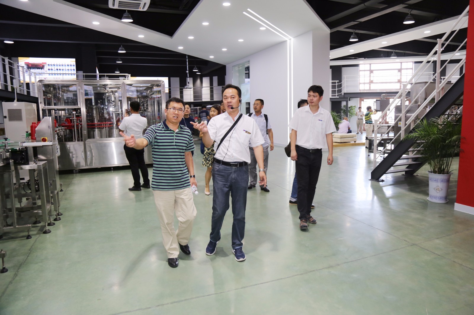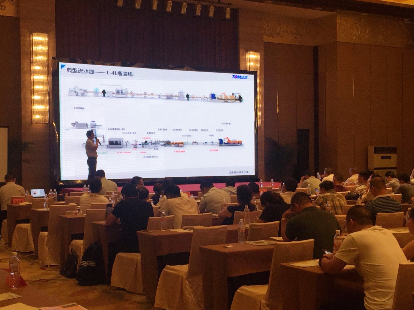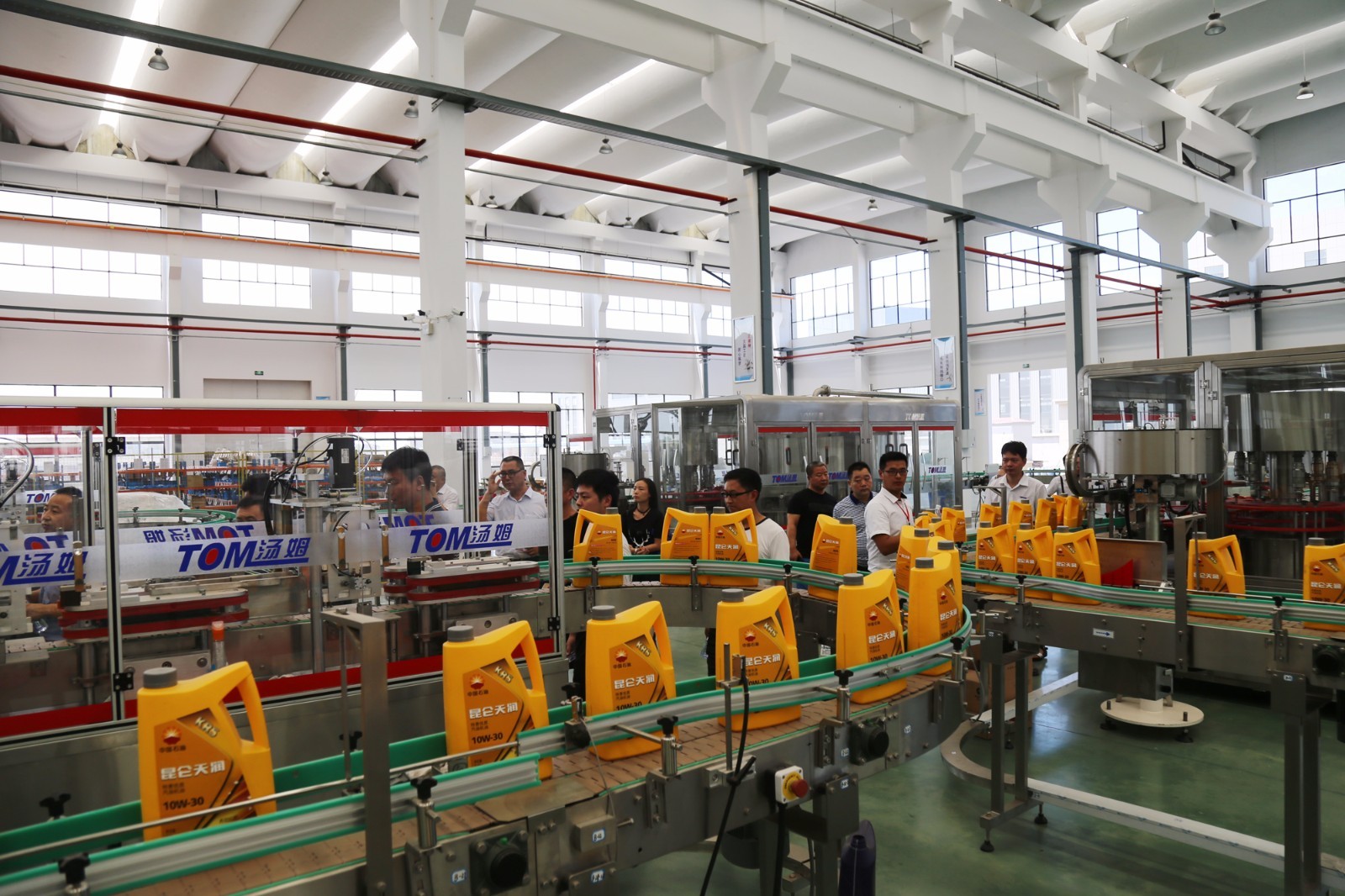 江蘇湯姆集團代表在介紹公司潤滑油灌裝線