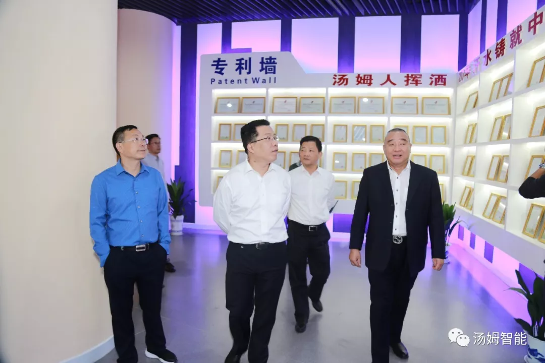 丁市長先是參觀了湯姆集團的聲光電科技展覽館,對展覽館展出的每一條智能灌裝線、每一個科技亮點都表示高度的贊賞!