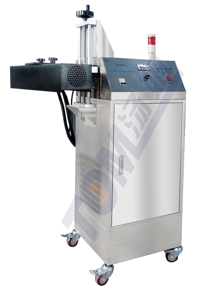 本機通過電磁感應原理使瓶口鋁箔生產渦流發熱導致鋁箔下層的薄膜熔化,從而粘附于塑料瓶或PE、PET瓶,已達到密封。采用高耐應力元件,參數范圍較寬,適用于各類異型瓶、大口瓶的封口,采用循環水冷卻,封口時不與瓶蓋接觸,符合GMP要求。